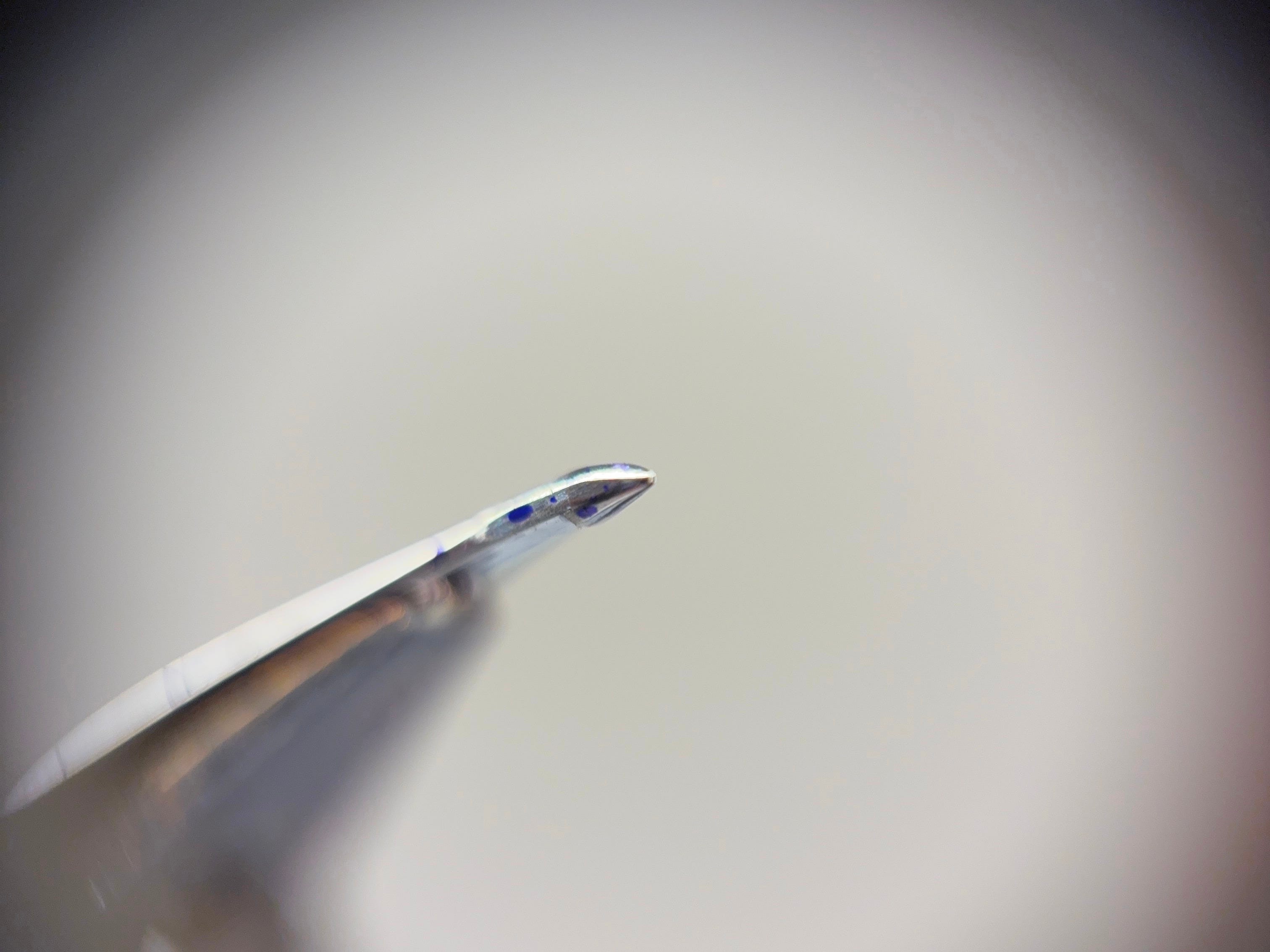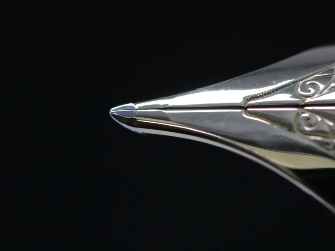 This one is done by Mike Masuyama. I had it in-hand as a reference when I was learning to grind needlepoints. The side cuts are quite deep, and overall it’s relatively taller than it is wide. It has similarity to the Platinum UEF, which isn’t the geometry I would make. And yet, it was smoother than any of my attempts. I have no explanation for this beyond Mike having the magic touch for nib work.